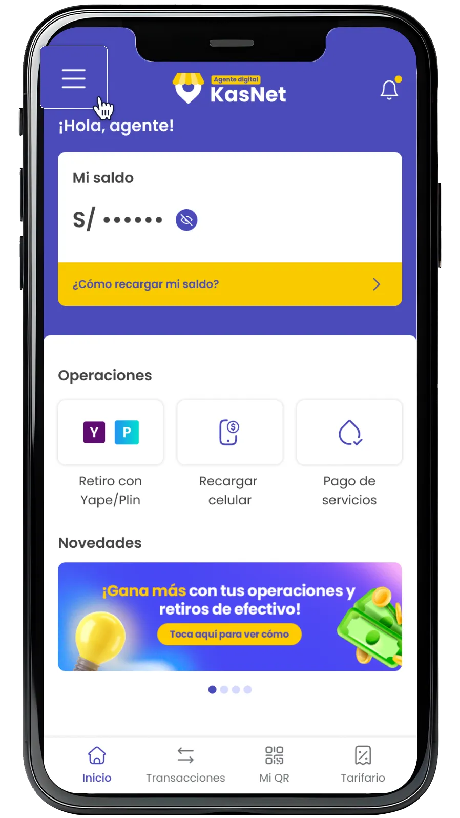 También puedes recargar tu POS desde tu app Agente digital KasNet