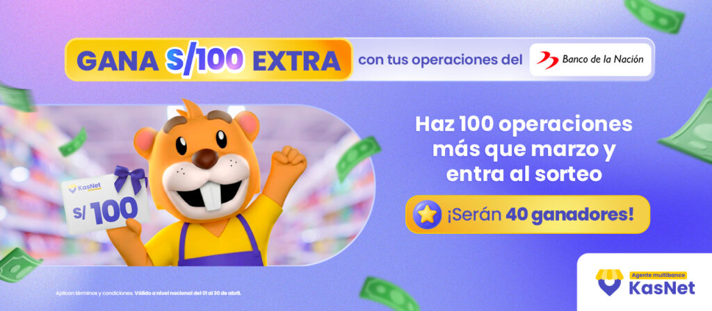 (ii) Realicen como mínimo 100 operaciones del Banco de la Nación adicionales en comparación con marzo, usando su POS. No se consideran consultas.